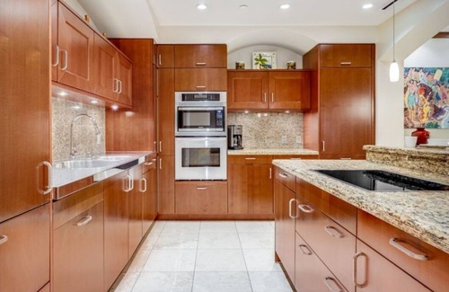 Luxury awaits in this exquisite three bedroom, three full baths, 2500 square feet Penthouse Villa J205 with gorgeous ocean view. Our Aloha Kai Suite is elegant and refined to the last detail--sophisticated furnishings and spectacular art. Formal entry hall. Spacious living room. Formal dining with seating for 8. Fully equipped, gourmet European kitchen. Fantastic primary suite with views to Molokini, Kaho'olawe & Lanai with French door to large, covered lanai. 3 dramatic baths with glass enclosures. Extensive use of granite & marble. African mahogany interior doors & trim. Nine-foot ceilings. Motorized roller shades with black-out lining on all windows. Travertine floors. Lighted ceiling fans in all rooms.