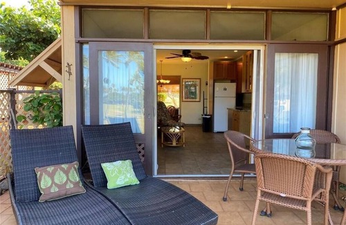 Kepuhi Beach Resort Condo. Corner ground floor 1 BR. Living and Bedroom both face the awesome blue ocean view which is backdrop to the 11 acre green grounds full of mesmerizing swaying palm trees. 800' to water’s edge on Kepuhi Beach. Short 1/2 mi. walk to famed Papohaku 2-mile beach. Also Make Horse Beach to the north. All secluded. Watch carefully and you may spot another human. More likely a whale or monk seal!