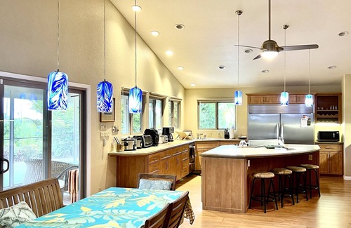 The living room has a 65" Samsung Ultra HD, 4K flat screen TV and DVD player and a few DVDs for your entertainment. Watch TV or the Pacific Ocean from the comfort of the couch. Each bedroom also have 40" flat screens. The owners have also provided DirecTV satellite with movie channels and air-conditioning. Our house book will give you lots of entertainment options away from the house as well. This home has a great location for exploring both the east and west sides of the island.
