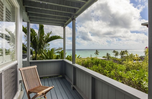 Beautiful Lanikai studio with stunning ocean view offers the perfect getaway for a single or couple. Ideal for Military personnel transferring to or from O'ahu who need a month or several months rental. Just a ten minute walk to either Lanikai or Kailua Beach, both consistently ranked as two of the world's top beaches. Enjoy artistic furnishings, and artwork by owner/artist. Relax on either the large shared lanai or your own private deck overlooking the Pacific and Mokulua Islands. Sunrises are many times absolutely spectacular with West Maui Mountain and Molokai in the distance, as well as the moon rises over the Mokuluas, lighting up the ocean. In winter months, the migrating humpback whales can be seen beyond the reef.