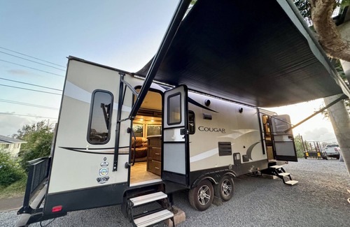 Our Haleakala Sunrise trailer is the perfect place to call your temporary ‘home’ while you’re in Maui – this unit has its own full kitchen with a fabulous stove, bedroom and everything you need.