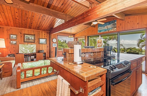 The home includes 3 bedrooms, 3 bathrooms, family room, and a deck that opens up to the ocean! The house comes with A/C in the 2 upstairs rooms and a/c downstairs as of 4/18/22, but with the doors opened up, who needs it! There is a well maintained landscaped acre of land for you to play on, even your own private "Pickle-ball or mini-tennis" court, and watch the magnificent sunsets from the open lanais!