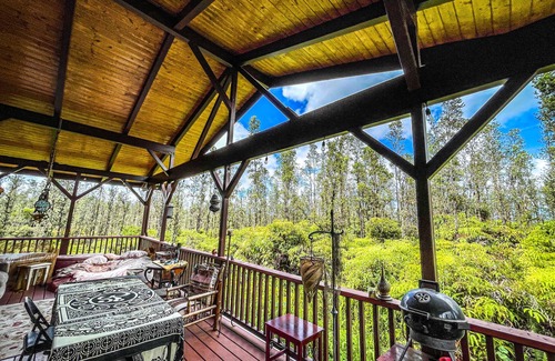 Rustic Relaxation Retreat Fairytale Haven near Volcano! Eco-Friendly on 2 Acres! is located in Hawaiian Acres. Rustic Relaxation Retreat Fairytale Haven near Volcano! Eco-Friendly on 2 Acres! provides accommodation, featuring Kitchen, View, Balcony/Terrace, among other amenities. This Cottage features Kitchen, View, Balcony/Terrace, to make your stay a comfortable one.