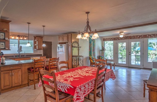 The hale has a master suite with a king bed, and 2 additional bedrooms with queen beds. The sizable kitchen, with its beautiful custom counter tops works extremely well with plenty of room to prepare and cook wonderful island meals. You can dine either indoors OR out on the lovely lanai that looks out into the very private backyard and grounds. There is even a BBQ grill for your outdoor cooking.