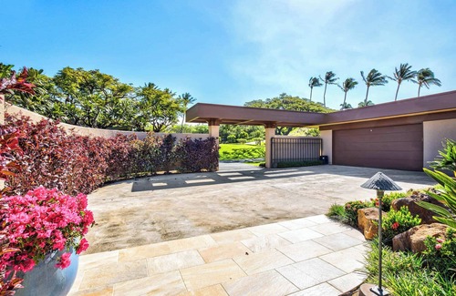 This grand, single-level, oceanfront estate offers a sunken living room with sliding glass pocket doors for indoor/outdoor island living and Sonos sound system, a chefs' kitchen with Wolf and Sub-Zero appliances/wine refrigerator, a dining area with adjoining wet bar, dual master suites, each with a king size bed (one has an outdoor shower); the 2 twin beds in the fourth bedroom can also be converted into a king. Additional features include a laundry room, air conditioning and ceiling fans, a private, heated swimming pool and furnished lanai with BBQ, plus a two-car garage. This residence is a 5-minute walk from the beach, golf and Mauna Kea Beach Hotel.